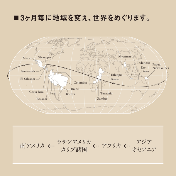 コーヒーを通じて世界各国を旅する気分で楽しもうという企画です。